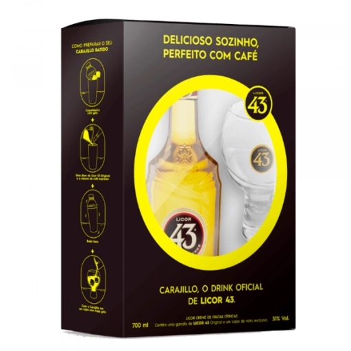 Kit contendo 1 garrafa de Licor 43 Original 700ml mais um copo de vidro.